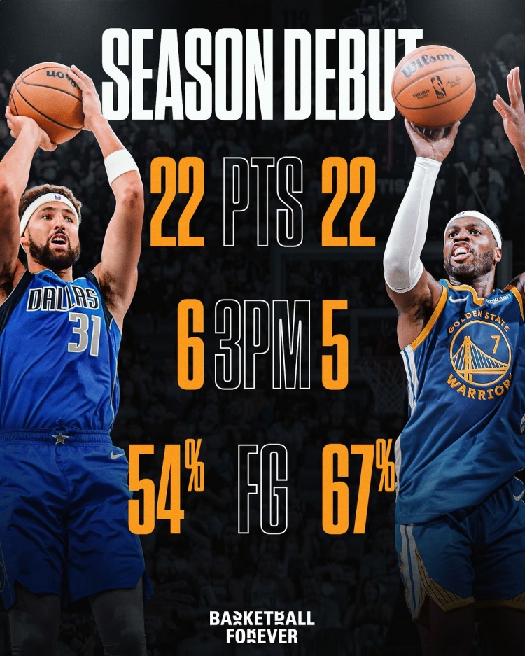 10月25日报道 独行侠赛季揭幕战主场120-109力克马刺,新援克莱-汤普森首秀惊艳。本场比赛,克莱在东欧身边找回了最擅长的无球打法,他出战26分钟,13投7中,三分10中6砍下22分7篮板(4