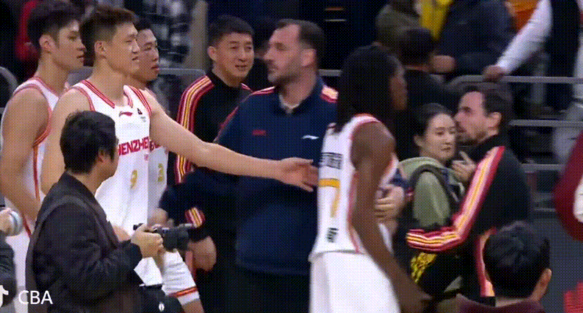 但是比赛结束后,在双方队员例行握手时,我们看到了奇怪的一幕,一开始人们还认为麦考尔与史密斯互相寒喧呢,但越看越不对劲,后来看到麦考尔怒指史密斯,双方贴得很近,不断地喷着垃圾话。史密斯不甘示弱,也用手指着麦考尔来喷,两人打起嘴仗。后来周鹏将史密斯拉回来,让吵架的两人分开了。其实这两队感情很好,广东队有前深圳队员,而深圳队也有前广东队员,这样的嘴仗没有必要。