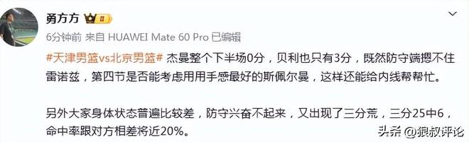 篮球记者贾磊发文点评:
