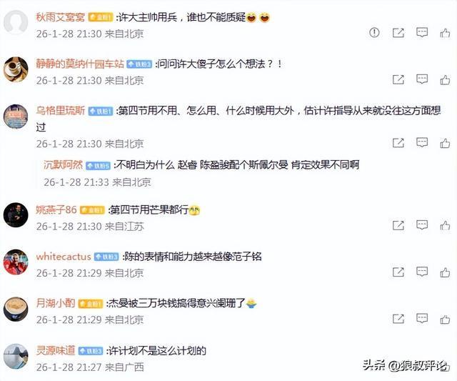有球迷点评说道:张德贵都知道第四节用雷诺兹打死你内线,之前雷诺兹第四节上过场嘛??老许连张德贵都玩不明白啊,斯佩尔曼状态这么好,第四节依然DNP,给自己点体面吧。