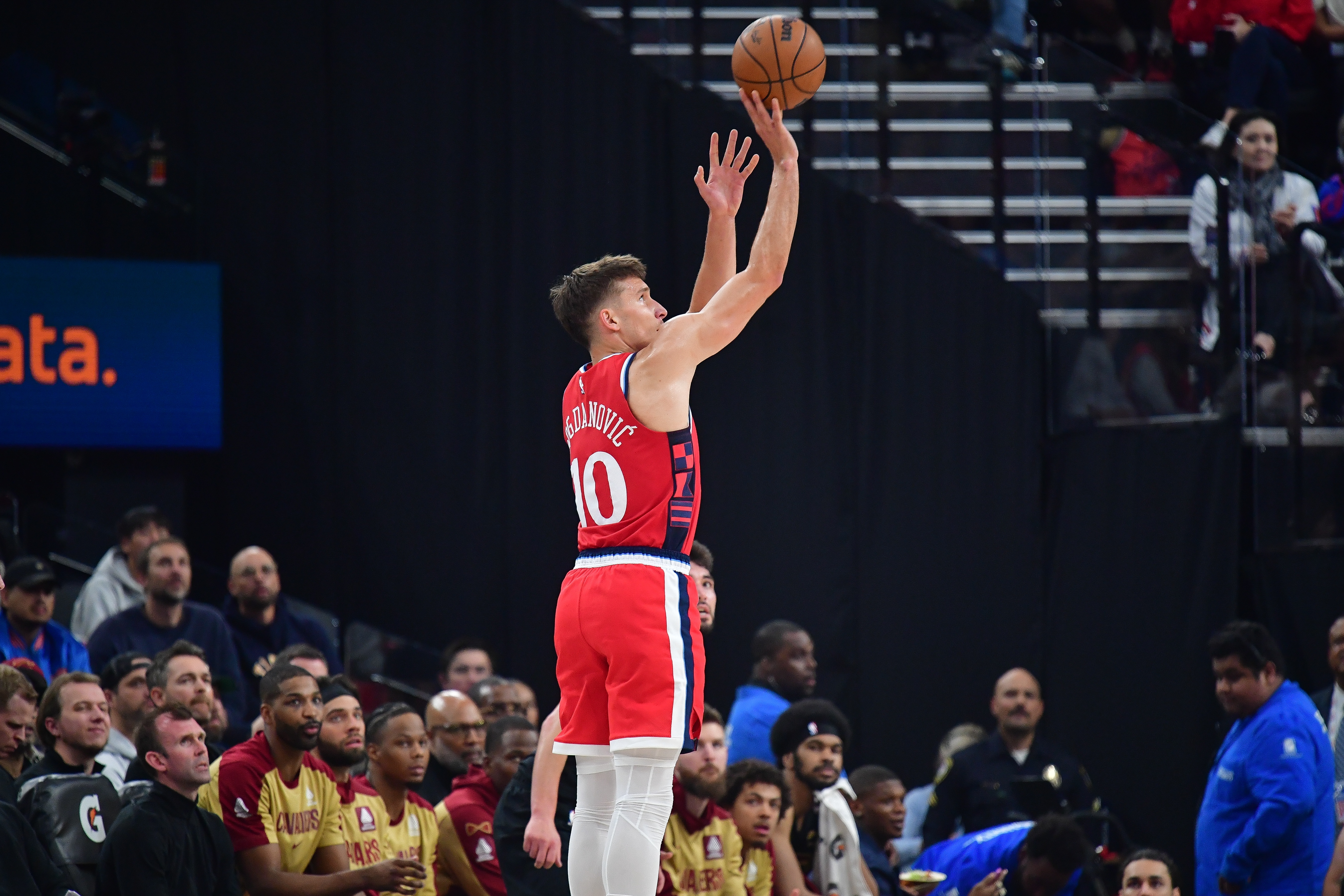 博格丹此役表现出色,进攻端手感火热弹无虚发,在29分半的时间里,投篮8中8,三分球4中4,高效拿下20分4篮板7助攻1抢断的数据,正负值+19(全场最高)。