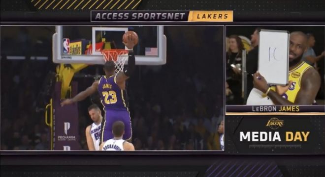 詹姆斯虽然从未参加扣篮大赛,但他无疑也是NBA顶级扣将,生涯有太多精彩隔扣。如今詹姆斯在新赛季媒体日接受Spectrum SportsNet采访,他给自己2019-20赛季隔扣别利察打10分,2021-2