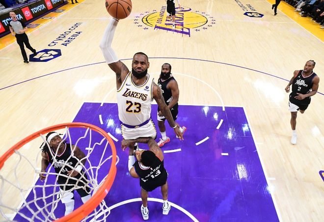 詹姆斯谈到2023-24赛季隔扣乔治打100分(夸张说法,满分是10分制),詹姆斯给出了令人信服的理由:“这可是打快船啊!你们都懂得,在这里我们对快船是什么看法,因此打100分和乔治无关,乔治是个好人,他当然做了一个商业决定,让开了路线,但我打这个分数,真的是因为这是对阵快船时完成的隔扣。”