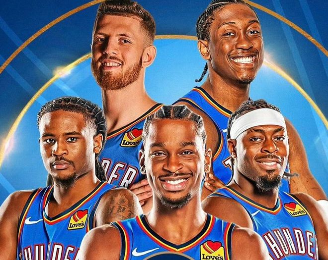 上赛季,雷霆队重金引进了哈滕,并完成了基迪卡鲁索大交易,真正吹响冲冠号角。雷霆队在常规赛取得了68胜14负的战绩,傲视群雄,刷新了队史最佳战绩纪录,亚历山大也将得分王和MVP奖杯重新带回了俄城。到了季后赛,雷霆队一路过关斩将,4-0横扫灰熊,4-3抢七击败掘金,4-1绅士横扫森林狼,总决赛4-3抢七击败步行者队,夺得NBA总冠军,这也是雷霆队史首个NBA总冠军奖杯。