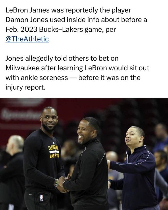 这起震惊篮球界的非法赌博与泄密风波,随着FBI长达多年的调查逐渐浮出水面,10月23日,FBI局长召开新闻发布会,宣布破获NBA涉黑赌博案,共逮捕30多人,其中包括了波特兰拓荒者总教练毕勒普斯、迈阿密热火后卫洛席尔,以及前骑士球员达蒙·琼斯,起诉书揭露了最具争议的事件,2023年2月9日湖人对公鹿比赛,当天早晨,琼斯向赌徒传送讯息:“今晚押密尔瓦基,大注”,他明确告知同谋詹姆斯将缺席比赛,而那时官方伤病名单尚未公布这一信息