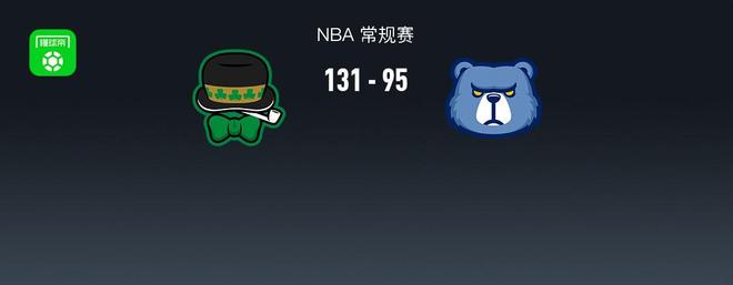 第四节凯尔特人米诺特拿下9分,灰熊GG-杰克逊拿下6分,最终凯尔特人131-95战胜灰熊