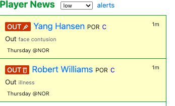 - 北京时间12月12日,NBA常规赛:鹈鹕主场vs开拓者。赛前开拓者官方宣布:杨瀚森(面部挫伤)和罗威(生病),今天休战。这是...发表于: 12-12 11:41