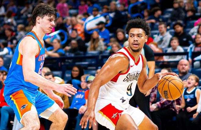 本场比赛中,伯明翰中队虽然有些遗憾地输掉了比赛,但是球队的替补后场新星杰登-斯普林格(Jaden Springer)的表现其实是相当不错的。斯普林格全场出场30分06秒,投篮10中8,三分线外3中3,罚球5中4,得到了23分5篮板6助攻3抢断的数据,还有5次失误和5次犯规,正负值更是达到了全队最高的+13。斯普林格在进攻端手感不错,得到了不少分数,也展现出了全面的得分能力,甚至他在三分线外都找到了自己的手感。斯普林格在组织和出了进攻方面同样起到了很好的效果,同样发挥出了自己的特点。除此之外,斯普林格在防守端也是展现出了防守大闸应有的水准。斯普林格在本场比赛中的表现算得上是攻守兼备 要不是有他的出色表现,球队只会输得更惨。