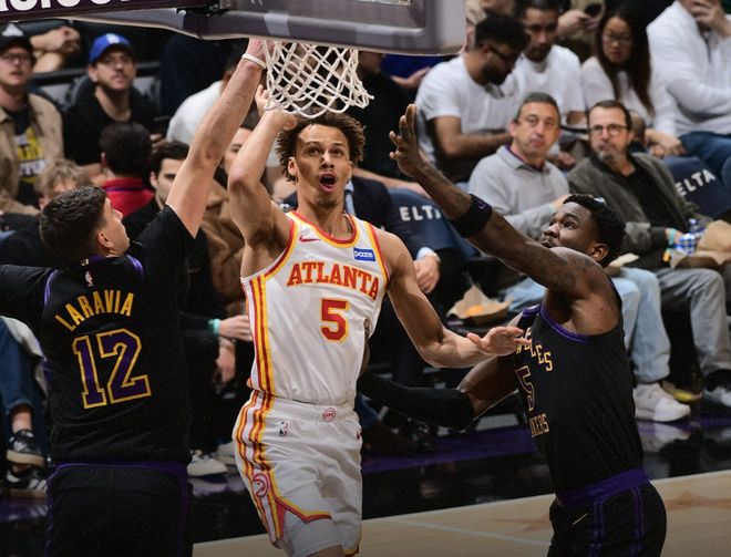 湖人数据,詹姆斯31分9篮板10助攻4失误,东契奇27分5篮板12助攻7失误,艾顿17分18篮板,拉拉维亚17分4篮板3助攻,文森特10分,斯玛特16分5篮板4助攻。湖人全队投进19记三分球,提前过年了。老鹰数据,亚历山大沃克26分4篮板3助攻,迈克勒姆25分3助攻,杰伦约翰逊13分6助攻,克雷伊奇11分4助攻,基斯伯特19分。本场过后,湖人重新超越火箭,排名西部第五。