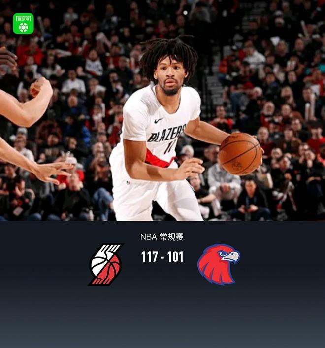 开拓者末节致胜117101老鹰,杨瀚森未登场,夏普24+9+5