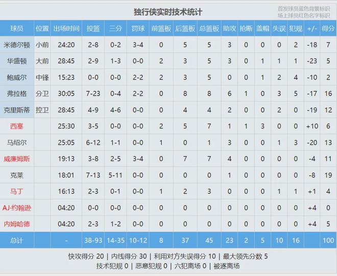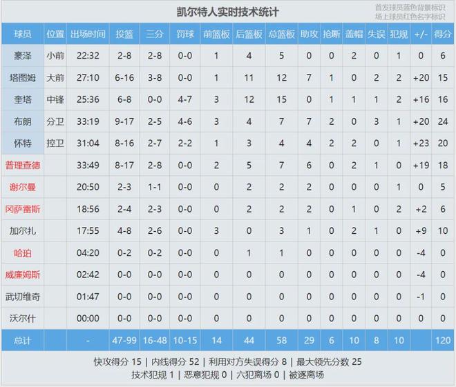 第三节塔图姆找回信心,突破上篮+急停跳投,一个人连得7分。凯尔特人第三节再得32分,分差也来到两位数。三节战罢,凯尔特人90-80领先10分。第四节独行侠进攻断电,凯尔特人轰出一波13-0,分差来到20+,没有悬念了。