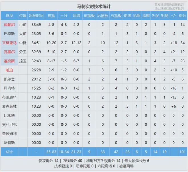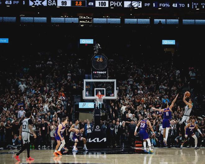 此役文班首发出战35分钟,投篮20中10,三分7中2,罚球12中12,砍下34分12篮板3抢断1盖帽,正负值+18全场第二。最后10.8秒,马刺前场边线球。文班后仰跳投命中反超1分,只剩下1.1秒!太阳没有暂停了,最后一攻不进。