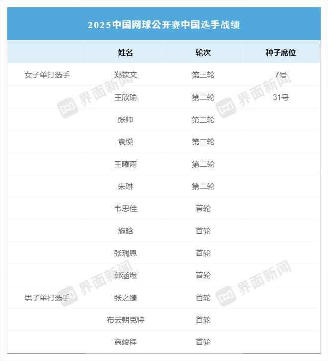 2025中国网球公开赛中国选手单打表现/制图:界面新闻 武冰聪