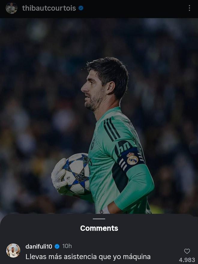在皇马5-0客胜阿拉木图凯拉特的欧冠赛事中,门将库尔图瓦以一记精准后场长传助攻姆巴佩单刀破门,赛后他在社媒发布照片庆祝胜利,获得队友塞瓦略斯调侃:“你的助攻数已经超过我了