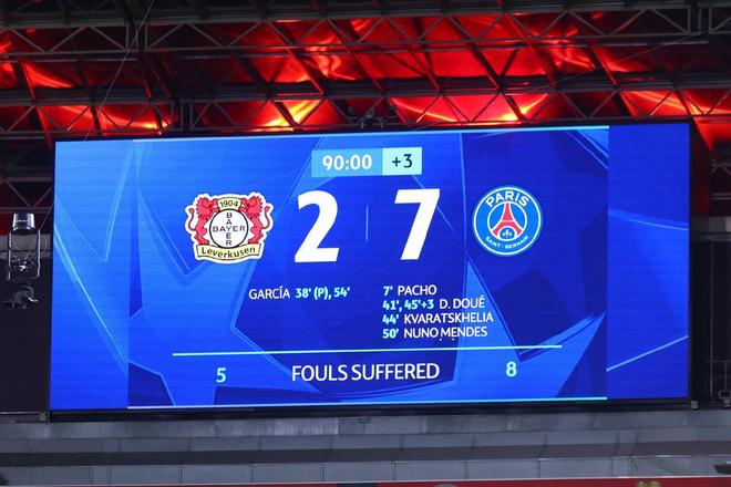 最终,巴黎圣日耳曼客场7-2狂胜德甲豪门勒沃库森。