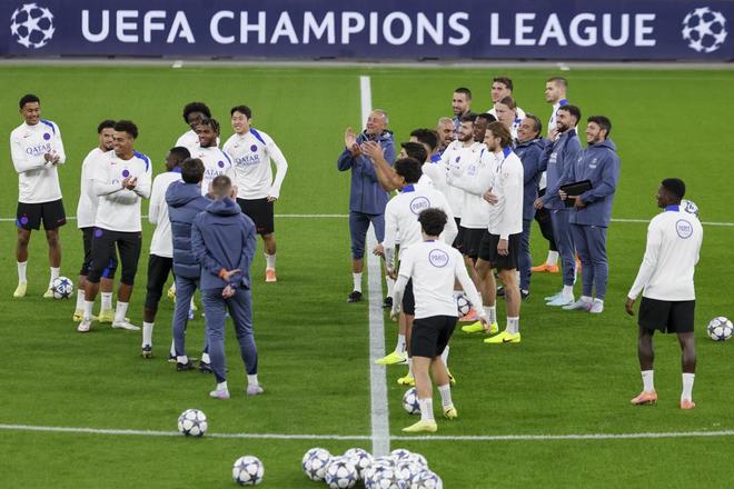 10月20日,巴黎圣日耳曼队主帅恩里克(中)带队训练。新华社