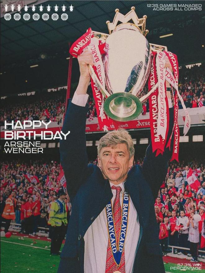 - 10月22日是温格的生日,祝教授76岁生日快乐!执教阿森纳出战1235场各项比赛,3个英超冠军,7个足总杯冠军,1次赛季不...发表于: 10-23 12:14