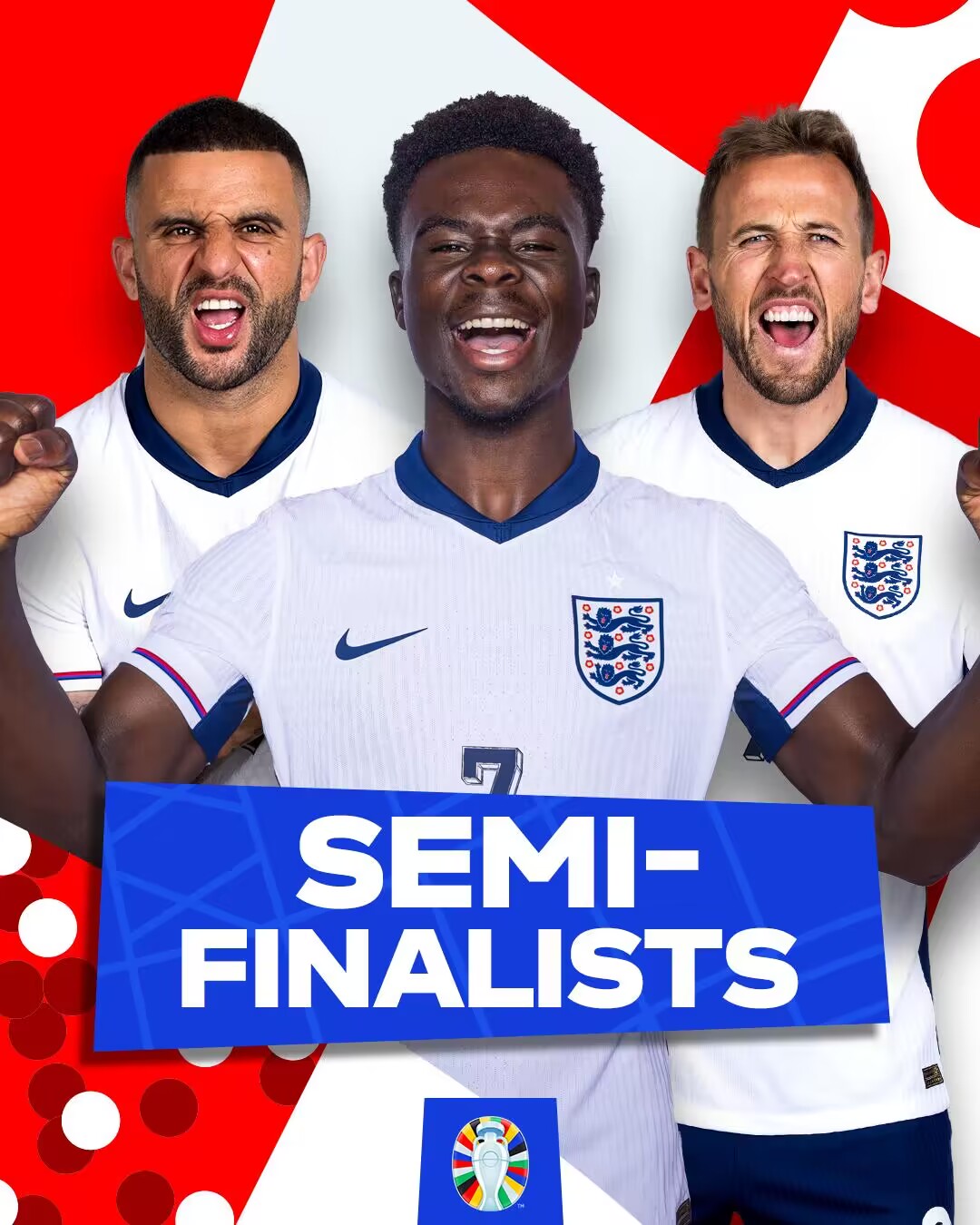 07月07日报道 欧洲杯1/4决赛,英格兰常规时间1-1,点球大战5-3淘汰瑞士,涉险晋级欧洲杯4强。英格兰在半决赛中的对手,将是阵荷兰vs土耳其的胜者。