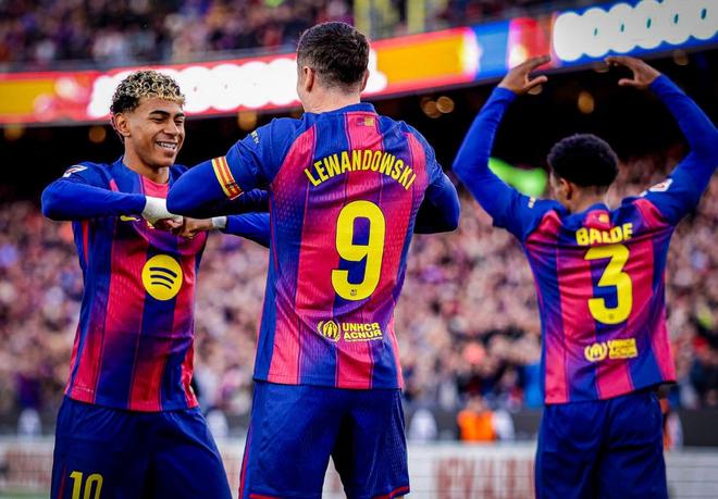 诺坎普呼唤梅西!莱万闪击,亚马尔天秀助攻,巴萨40登顶西甲第1