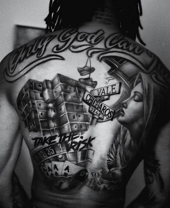米兰边锋莱奥在背后纹了一个大幅纹身,由纹身师维尼修斯-坎迪多设计并花费几个月时间完成。在完成纹身之后,纹身师在社交媒体上发布了莱奥的这个纹身。