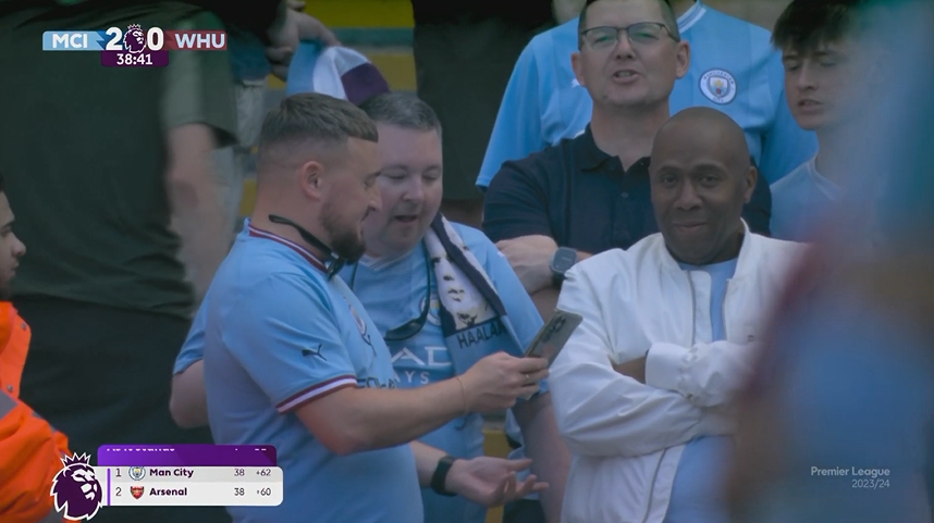 神情轻松!阿森纳被进球后,曼城球迷低头看比分
