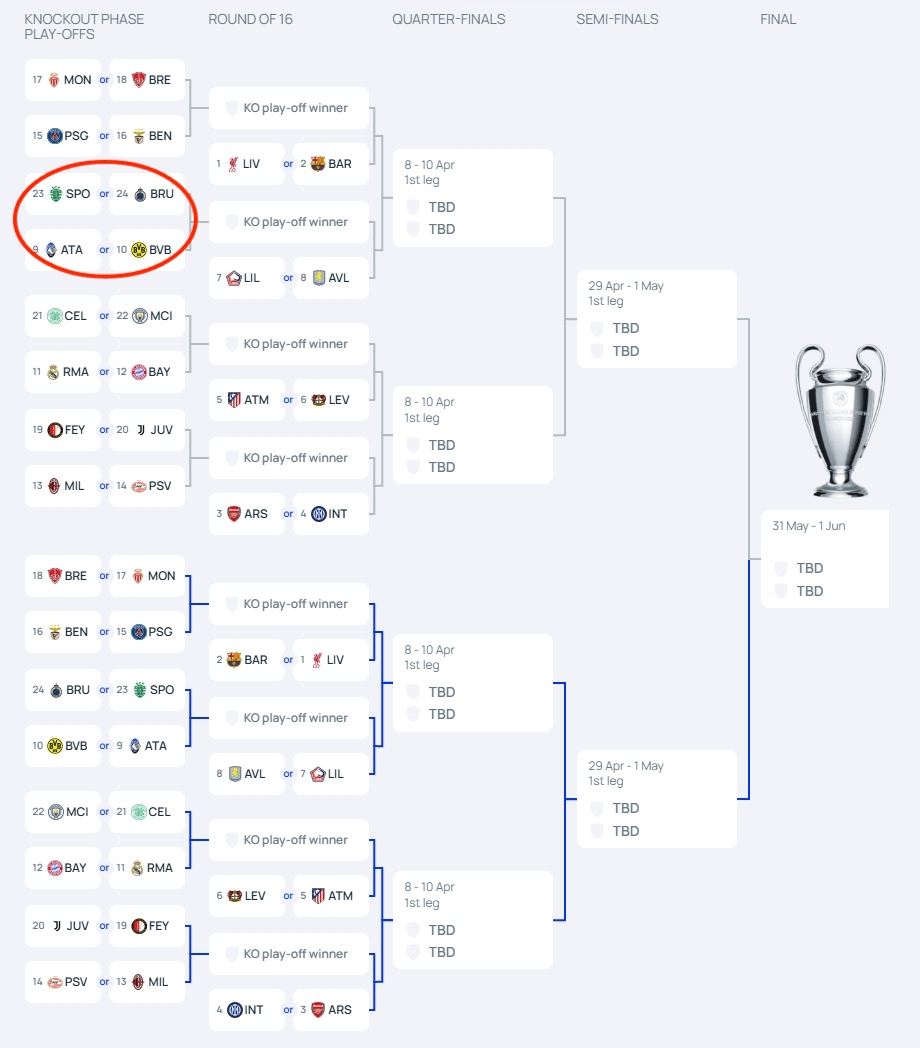 葡萄牙体育本赛季欧冠开局3胜1平,一度高局积分榜第2位,仅次于利物浦。但是前主帅阿莫林被曼联挖走之后,球队在欧冠3连败排名疯狂下滑。最终后4轮惊险拿下1分的葡体,仅排名附加区倒数第2,他们将在附加赛对阵亚特兰大或是多特蒙德。