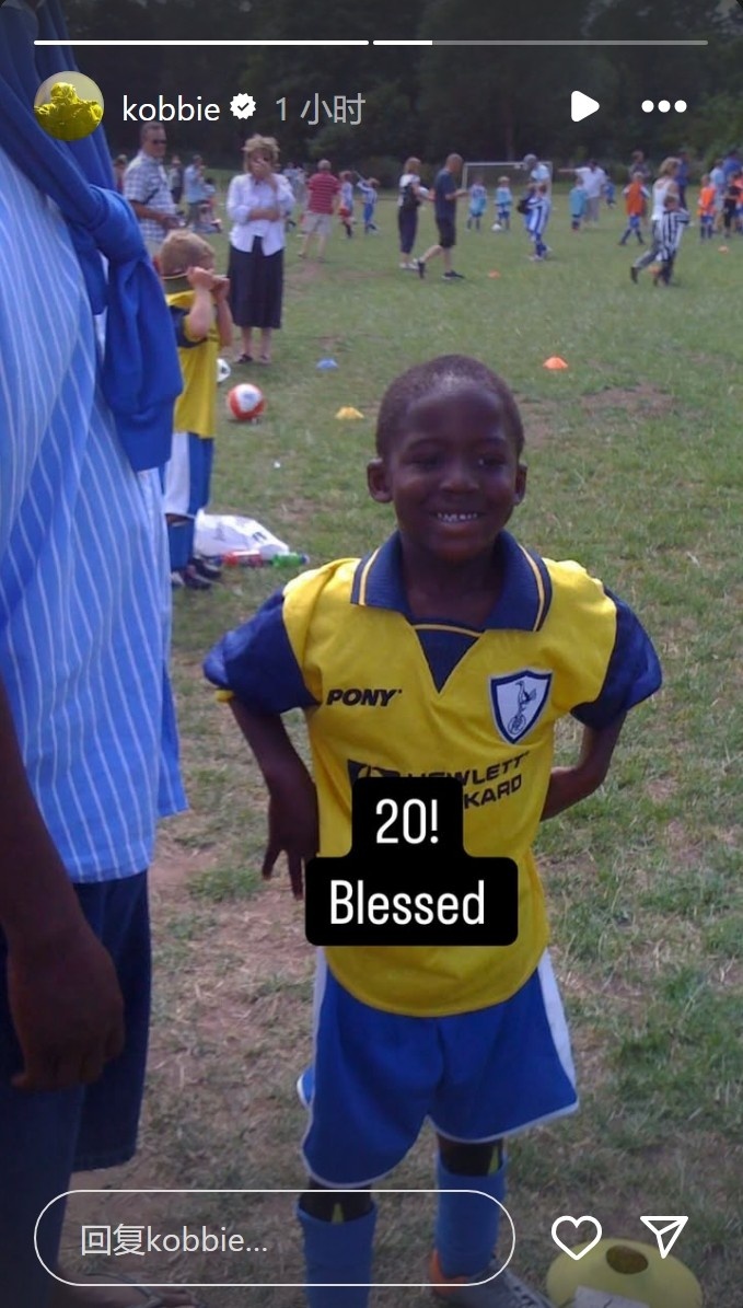 今天是梅努的20岁生日,他在社交媒体上晒出儿时的照片,并配文:“20岁!幸福。”