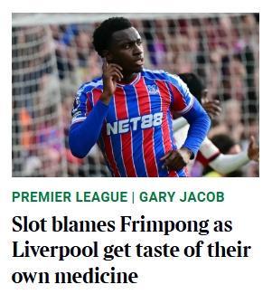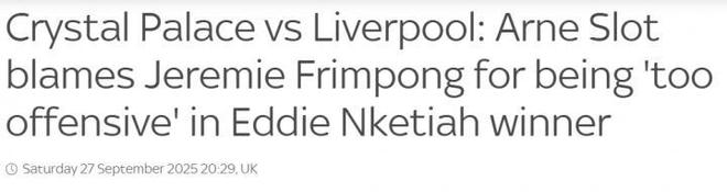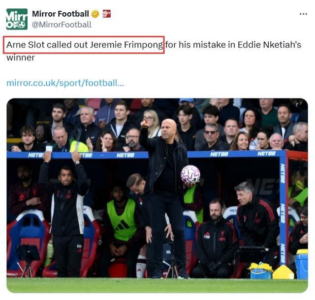 斯洛特的这番言论针对性很强,虽然没有明确点出球员的名字,但各大英国媒体赛后均指出,斯洛特的矛头指向的是右后卫弗林蓬,他在最后时刻没能防住恩凯提亚。