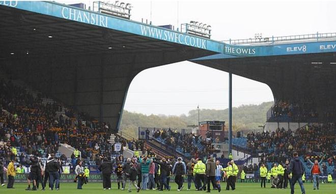 本周末谢周三在主场对阵考文垂的比赛中,开场仅10分钟本场比赛便因球迷冲入希尔斯堡球场抗议而被迫中断。球迷对球队在老板德吉蓬-钱塞里治下的糟糕管理感到愤怒。这家处于困