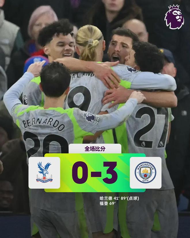 凛冬已至,英超争冠却愈发火热。当所有人还在讨论曼城是否因伤病和疲劳掉队时,蓝月军团用一波荡气回肠的五连胜,强势宣告王者归来。北京时间12月14日,曼城客场3-0完胜水晶宫,积分追至距榜首仅2分之遥,而这一切的背后,是哈兰德无解的统治级表现,是瓜迪奥拉战术板上的神来之笔,更是整支球队在逆境中淬炼出的钢铁意志。