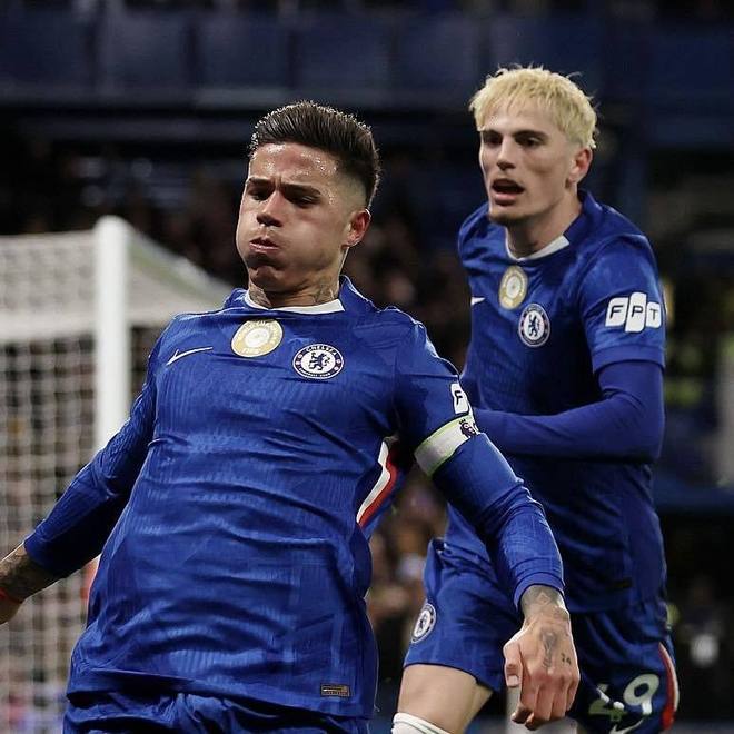 第23分钟,切尔西终于打出一次流畅的反击。恩佐在中场完成策动,随后前插到禁区,接到队友横传后冷静晃开防守,右脚抽射直挂球门死角,切尔西2-1首次反超对手。