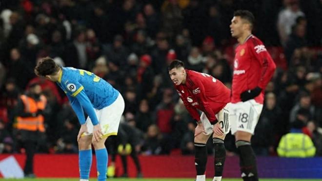 更令球迷不满的是,比赛尚未结束,老特拉福德看台上便已响起阵阵嘘声和抗议声。当主帅鲁本·阿莫林在比赛尾声阶段做出换人调整时,现场观众更是表现出明显的失望情绪,纷纷高喊要求球队加强进攻。然而,曼联随后的表现依旧缺乏说服力。