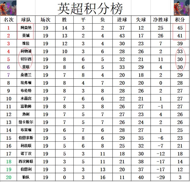 英超最新积分战报半程冠军阿森纳笑了!曼城连胜终止少榜首4分