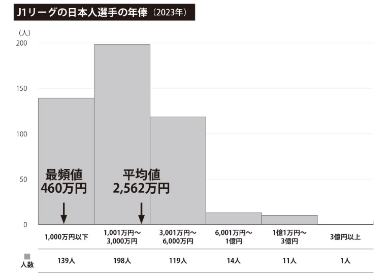 J联赛本土球员的平均年薪为2562万日元,约合120万人民币。而大部分球员的年薪集中在6000万日元以下,也就是280万人民币以下。而仅仅有一个人的年薪超越3亿日元,也就是年薪超过了1400万人民币。