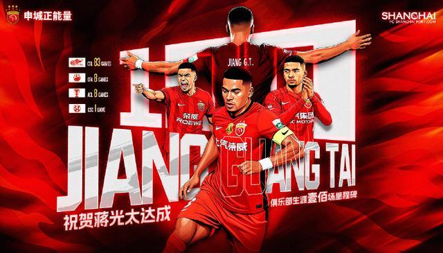 蒋光太迎来自己在上海海港队的第100场比赛。