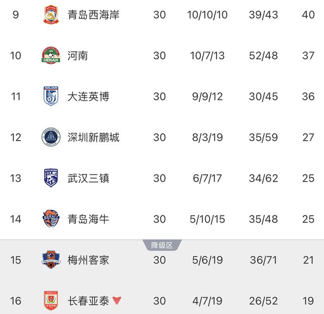 随着海港10大连,泰山+国安皆51,蓉城11,中超收官积分榜出炉