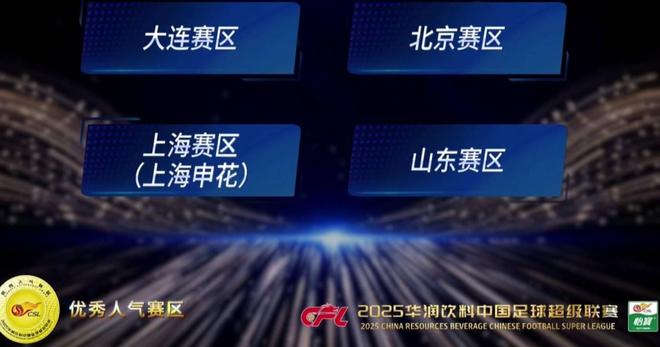 北京时间12月12日,在2025赛季中国足球职业联赛颁奖会上公布了本赛季三级联赛优秀人气赛区奖项评选结果,中超为大连赛区、北京赛区、上海赛区(申花)、山东赛区。中超优秀人气赛