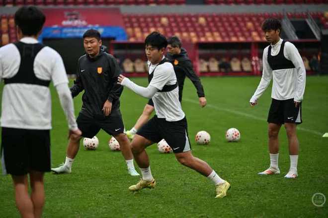 成都蓉城球员进行踩场训练。